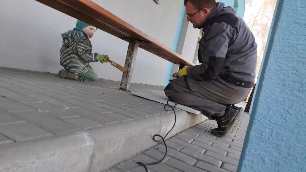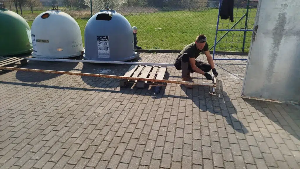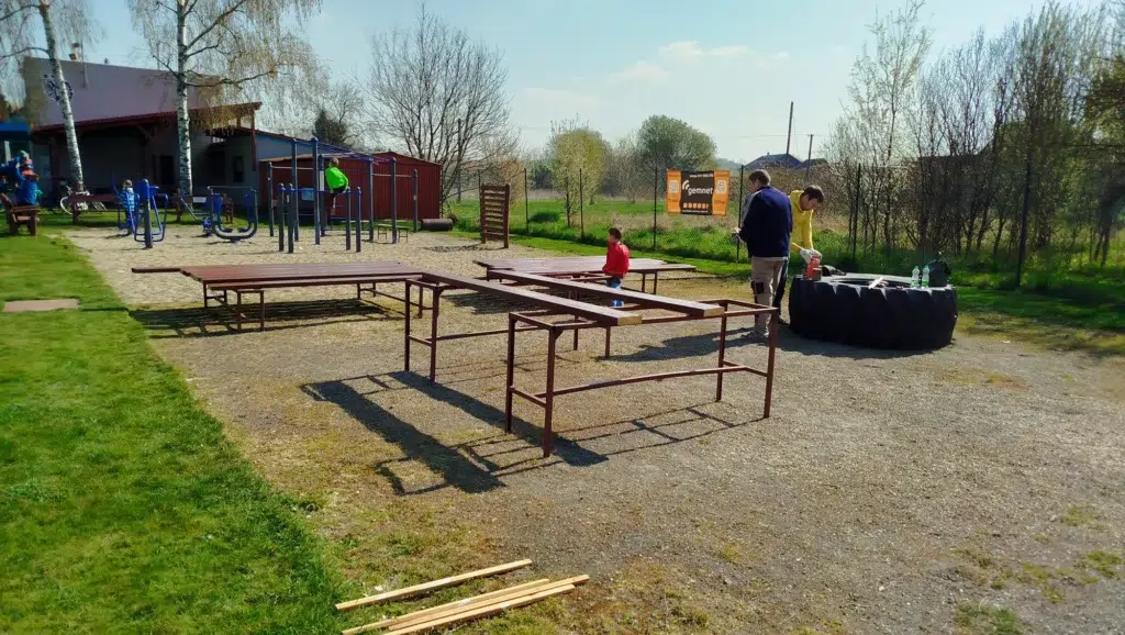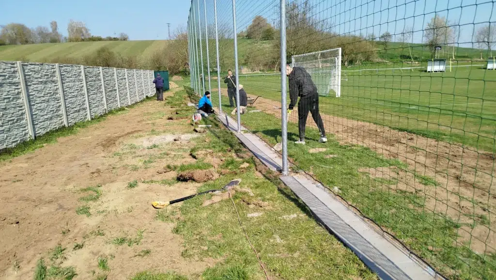 Venkovních úkolů bylo mnohem víc, stihli jsme zrenovovat napínací rámy, které poslouží na tréninkovém hřišti, obrousili a natřeli jsme nohy lavek u kabin. Úplně nová bude řada laviček na topolské straně hřiště, na kterou jsme připravili a natřeli nové fošny a také opravili patky těchto laviček. Na této straně hřiště se nám podařilo odstranit náletové dřeviny, a také s pomocí firmy SVS correct realizace s.r.o. vytáhnout starý plot společně s jeho betonovým základem.